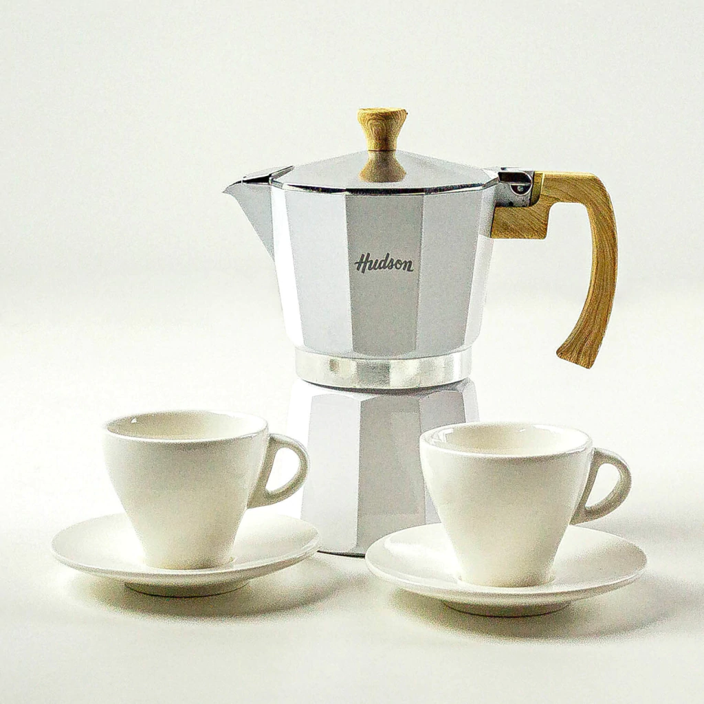 Las cafeteras Hudson tipo italianas miden su tamaño y capacidad en tazas de café de 45 ml c/u