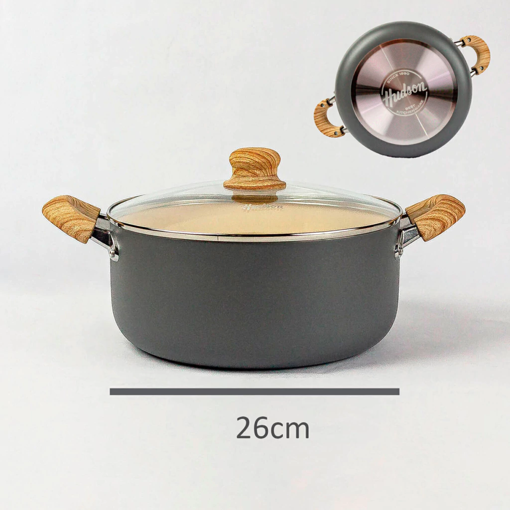 Las piezas antiadherentes de alta resistencia, son duraderas y fáciles de limpiar. Su diseño granito color gris y su mango soft touch aislante de calor, tapas de vidrio templado con válvula de vapor y difusor de calor le dará un toque elegante a tu cocina.